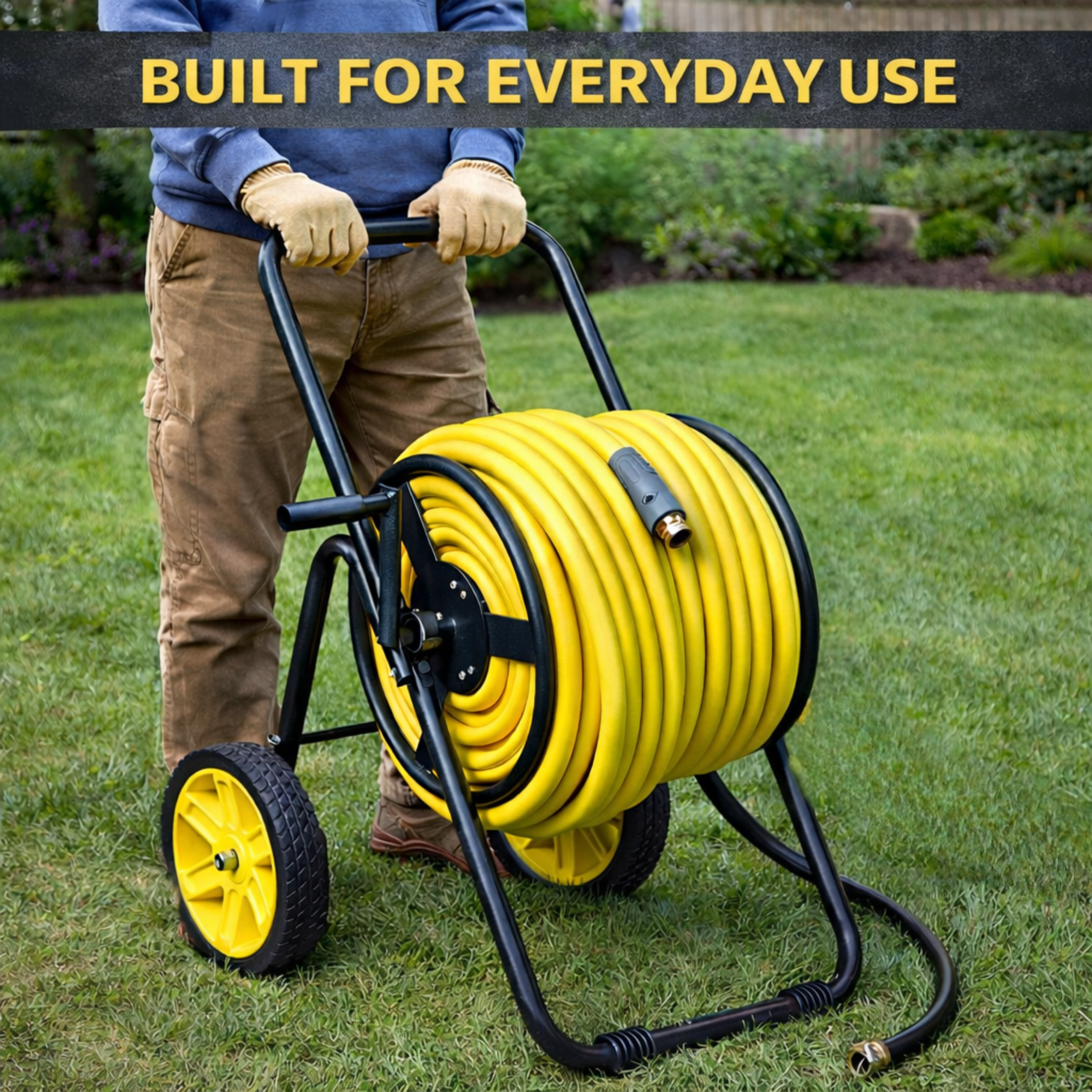 Our hose reel carts are designed for stability, durability, and ease of use. Unlike lightweight plastic reels, our carts feature all-steel construction, smooth brass swivel connections, and high-capacity reels that handle long garden hoses with ease.